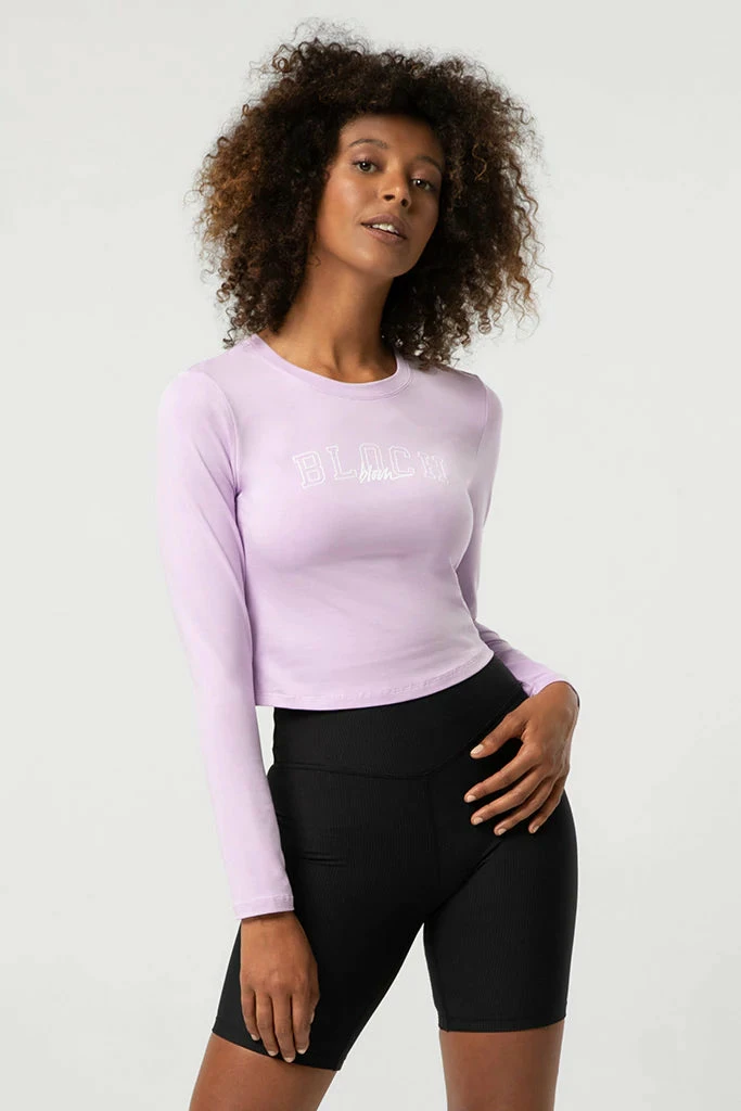When you want a little extra something, we’ve got you covered with the new long sleeve cropped tee. This will be your go-to fave for those days where you want to layer up or have something across your shoulders. The super comfy, mid-weight cotton-blend is fitted in style with a generous stretch, making it the ideal piece for layering or worn on its own for an active lifestyle. The high neck crew allows for easy pairing with a crop top of your choice, boasting a recognisable dual Bloch logo in a bold heritage and script font.