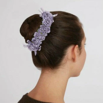 Colour tinted embossed flowers with English satin ribbon. Ribbon length 18cm with clips to fix in place. Flower size varies. Flower row 15cm