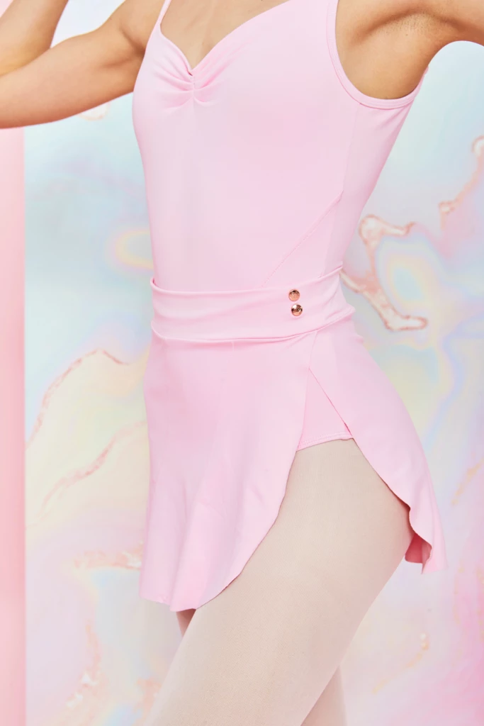 The Odile Skirt is your new go to. Our brand new pull on Odile Skirt features NEW rose gold button decor, detailed continuous seaming and thicker and softer fabrics. The Odile is also designed to have a sarong style side split to have you feeling comfortable during class.Â