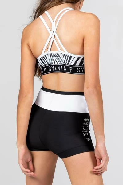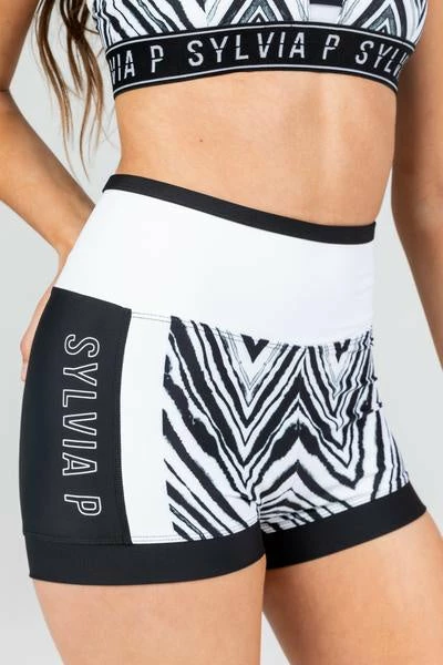This is the high-waisted short that will be your new training partner in a mash-up monochromatic design. The wider waistband is double lined for added support and is finished off with a firm binding to ensure no slipping down during practice. These are a shorter length short to allow for maximum leg movement. Featuring large Sylvia P branding on the leg and our hand painted watercolour print that has flattering multi-direction design lines built in. Made from our SP Activate fabrication which is quick drying, breathable and moisture wicking with a 4-way stretch and firm hold.