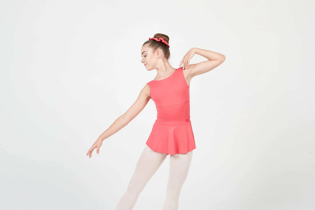 Our Royal Skirt is the perfect match to every leotard in the Signature Collection. Made from the same beautiful soft fabrics and vibrant colours, our Royal Skirt is flattering to all body types. This pull on style was developed with straight waistband and a slight high-low shape to elongate the leg line while providing comfort and coverage in the ideal areas. Charlotte wears a Petite/Small skirt.
