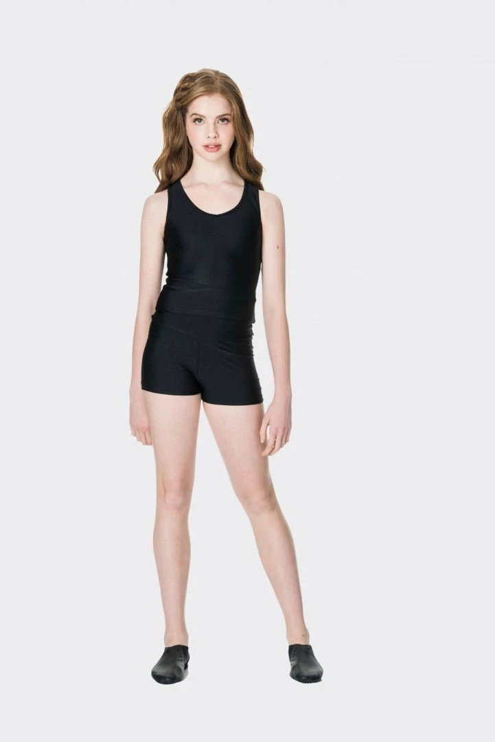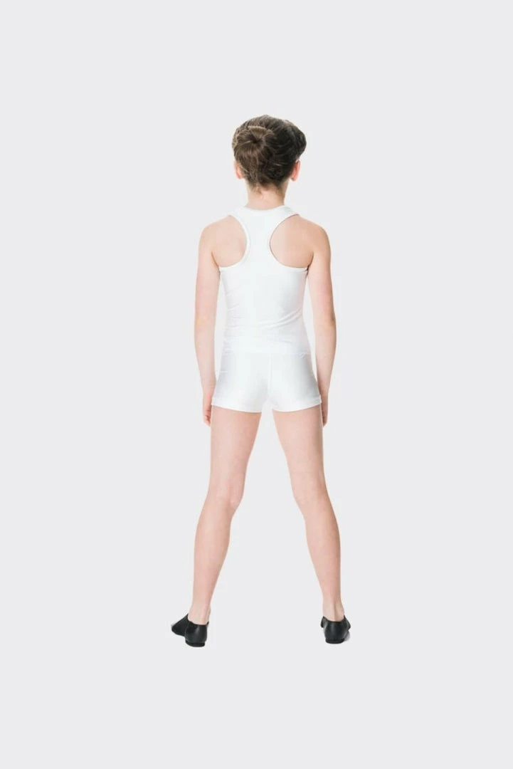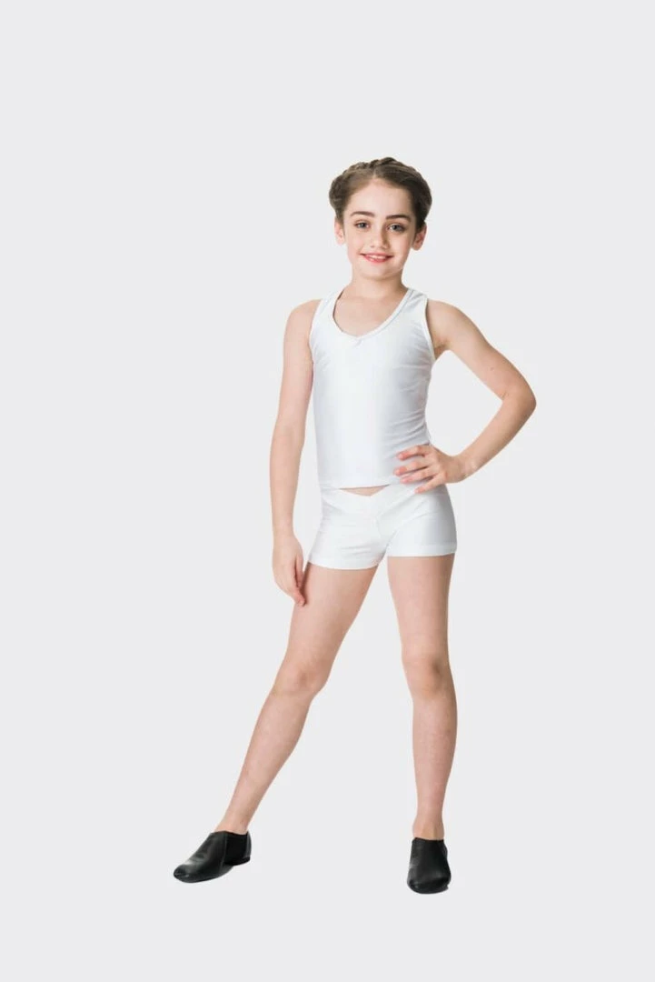 The T-Back Singlet Top is a comfortable dance top with a v-neck, t-back, and is fantastic for class and costumes.