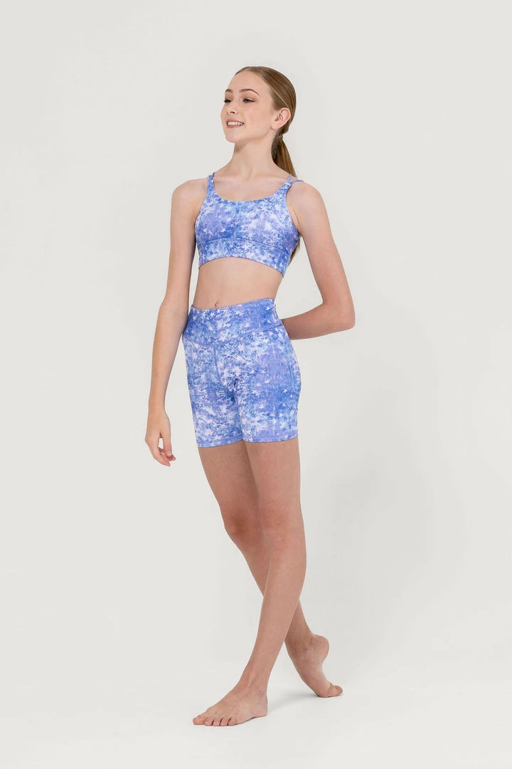 Cropped top with double rouleau straps and intricate back details. Supportive elastic under the bust, fully lined.