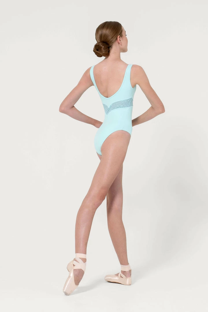 This leotard features sophisticated boat neckline, shoulder and waist mesh inserts are designed to give you a flattering look.