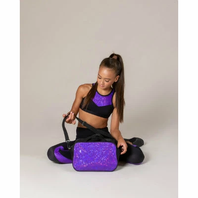The Everleigh Glitter Bag is the perfect size for tiny dancers. Why you’ll love it: – Sparkling holographic fabric panels to make a statement – Removable strap and carry handles for easy transport – Internal pockets for smaller accessories – Convenient zip closure – Available in Party Purple and Hot Pink