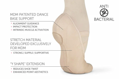 The new Dance base Support has been reconstructed to be wider at the forefoot, improving the aesthetics when in the pointed position. The suede outsole allows for flatter pleats giving the dancer a strong connection to the floor and helping to reduce the torsion when turning, a common issue found with stretch canvas shoes.