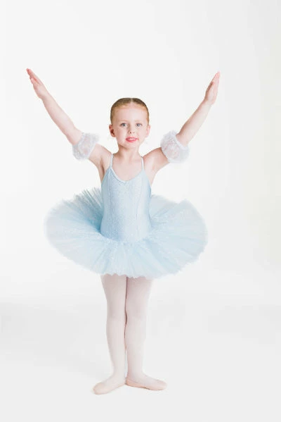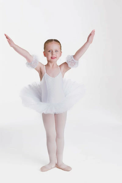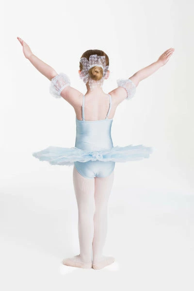 Hair accessory and arm puffs included.