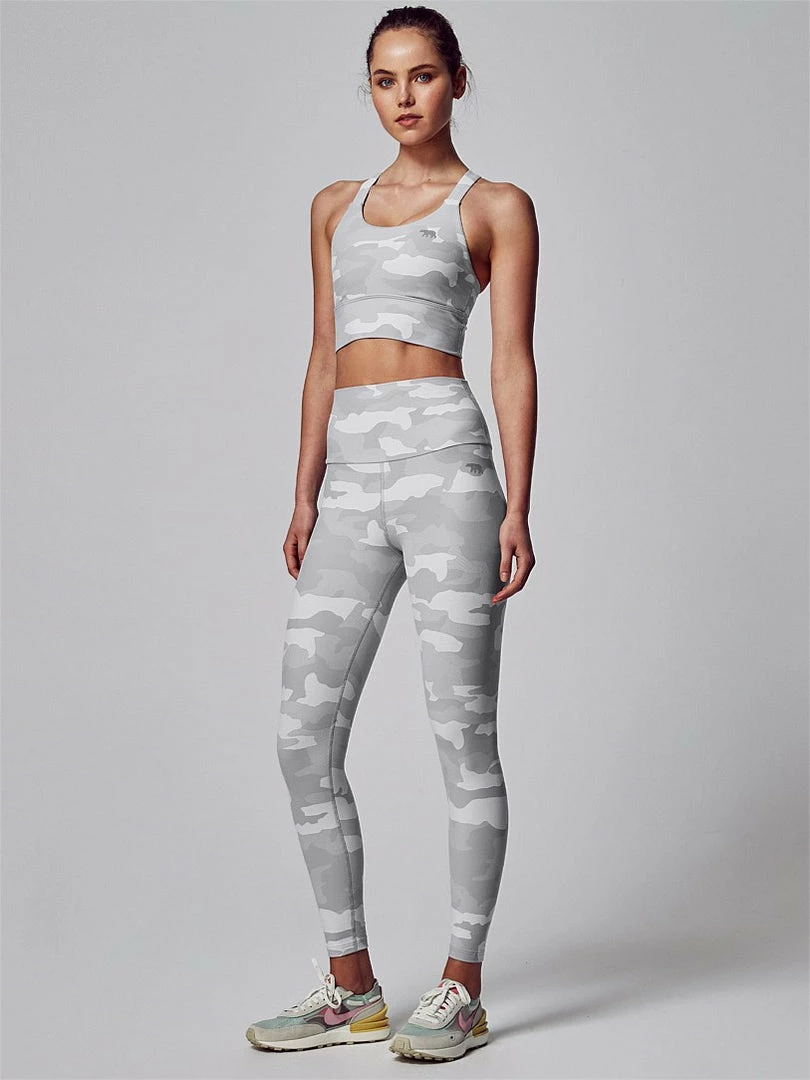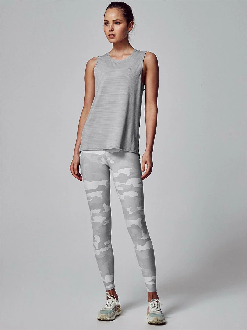 We are seriously crushing on Camo and these super high waisted Studio tight activewear leggings are meant to be! Our ultra-stylish Jacquard performance fabric is a gutsy, tactile knit with exceptional stretch and recovery to support your silhouette and ensure maximum comfort, offered this season is our gorgeous glacier colour palette. These tights perform best on the mat and for strength and stretch activities such as Pilates, yoga, or weights.