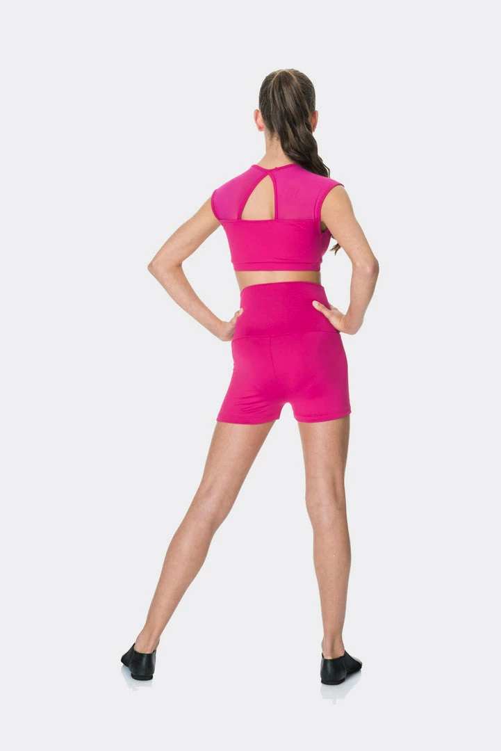 The Activate Crop Top is a modern take on classic classwear – a comfortable dance crop top with a mesh sweetheart neckline and keyhole back.