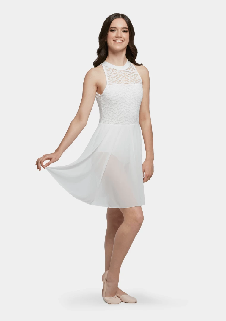 With subtle lace leaf detailing, soft mesh skirt and a beautiful open back, you’ll be sure to fall in love with this timeless classic.