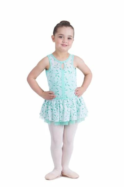 The Emily Dress is a sweet ballet dress in mesh with a velvet leaf overlay, tulle overlay and open back. Perfect for your little ballerina!