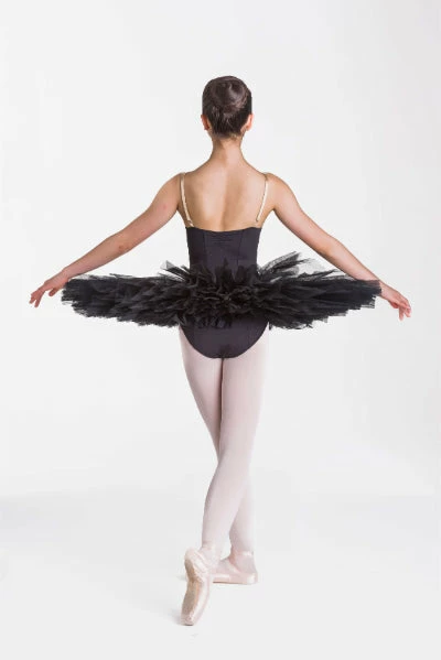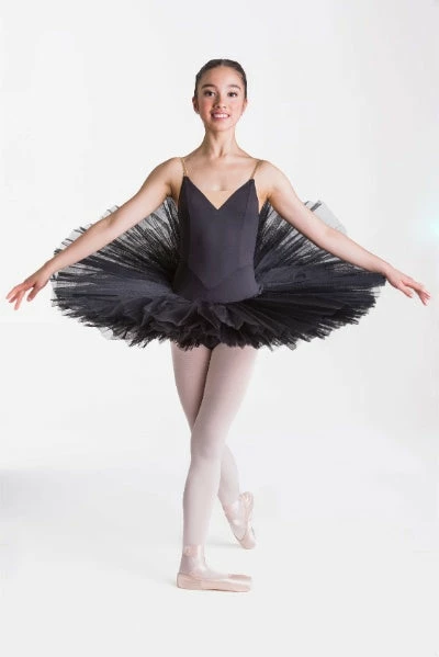Princess line “V” TACTEL bodice, flesh adjustable straps, six layers of tulle for child sizes, seven layers of tulle for adult sizes. Tutu bag included.