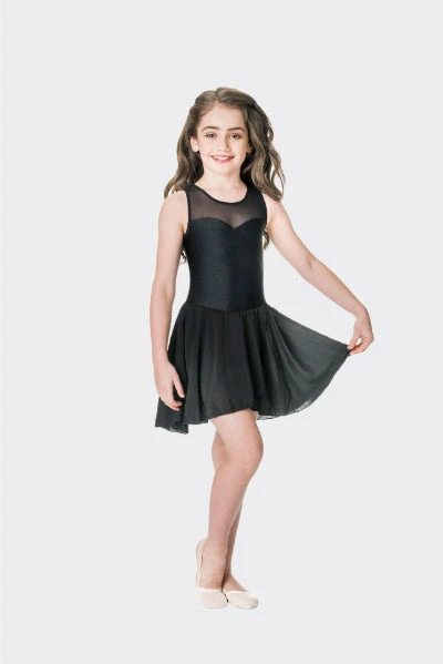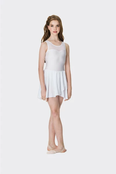 The Studio 7 Mesh Lyrical Dress is a beautiful dress for costuming. Embellish for a unique personalised touch or it is lovely as is. Features a nylon lycra leotard with sweetheart neckline, mesh panel front, attached chiffon skirt, and keyhole back with clip fastener.
