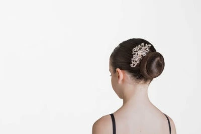 Intricate rose gold sparkle hair comb with pearl detail on a medium sized hair comb.