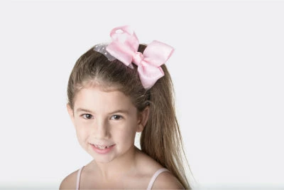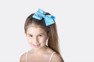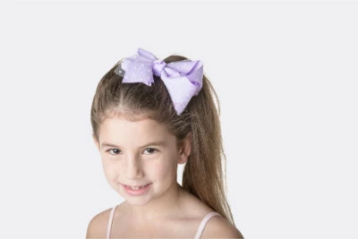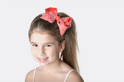 Gorgeous large coloured bow with white spotty mesh overlay, on clip.