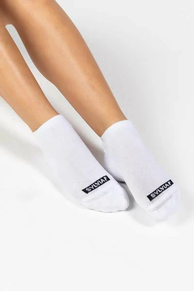 Soft cushioning designed for everyday activity and use. Made from a cotton blend knit and cut in our ankle style shape with soft rib finishing at the ankle. Large Sylvia P branding features on the sole and toe of this style. Designed as one-size-fits-all.