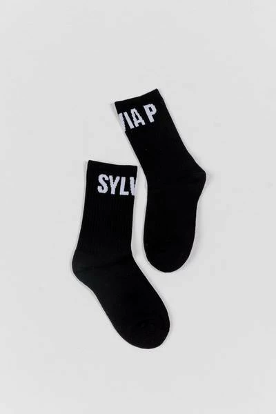 Soft and comfortable, designed as an everyday athleisure essential. Made from a cotton blend knit and cut in our crew style shape that is longer on the ankle. Featuring a rib finish with large Sylvia P branded logo. Designed as one-size-fits-all.