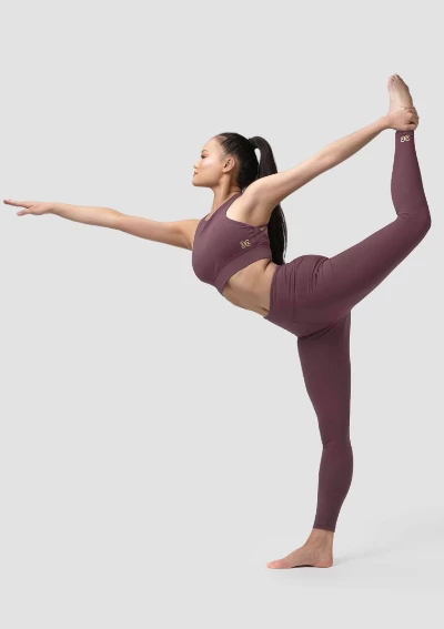 Nylon/Spandex. Lined with Polyester/Spandex. High neckline, wide waist band and back crossed rouleau straps detail.